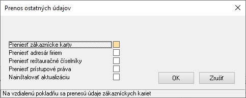 Slúži na prenos vybraných údajov na tzv. "REMOTE" pokladňu - t.j. program, ktorý je na inom počítači a pracuje v režime PC pokladne. -