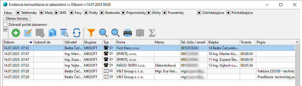 Evidencia komunikácie so zákazníkmi