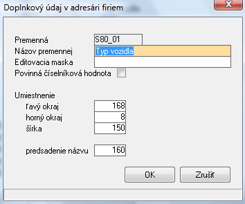 Každú premennú si vyberáme stlačením klávesu Enter, resp. dvojklikom myšky. Následne sa nám zobrazí okno Doplnkový údaj v adresári firiem.