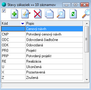 číselníky pre stavy zákaziek (Zákazková výroby – stavy zákaziek)