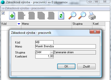 - Orientačný koeficient – toto políčko sa zobrazí v prípade, že merná jednotka v ktorej je odmeňovaný pracovník sa líši od mernej jednotky, ktorá je vyúčtovaná zákazníkovi. Určí sa tu koľko daného druhu práce sa vykoná za hodinu, napr. koľko okien sa stihne demontovať za hodinu.