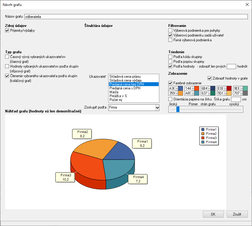 Nový návrh v okne vytvoríte stlačením klávesu Insert alebo kliknutím na ikonu Pridaj. Program otvorí nasledovné okno Návrhu nového grafu: