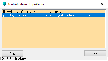 Program spustí kontrolu predaja PC pokladňou.
