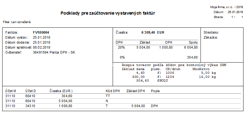 Na vytvorenom daňovom doklade (faktúre) s prenosom daňovej povinnosti, program uvedie informáciu o tejto skutočnosti, spolu so základom dane pre vedenie účtovnej evidencie. Ak nepoužívate súčasne program aj na vedenie účtovníctva, je potrebné vytlačiť pre účtovníka aj tlačovú zostavu Podklady pre zaúčtovanie vystavených faktúr - je dostupná z okna vystavené faktúry.