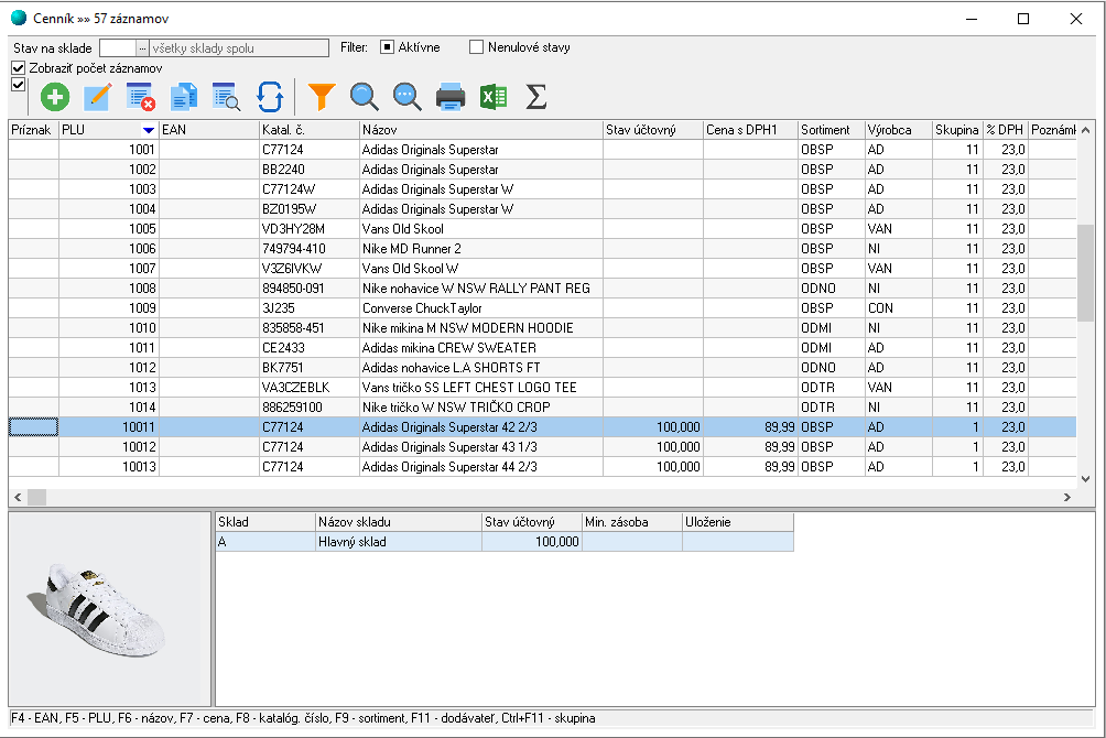 - Sériové čísla Alt+N - program zobrazí okno so zoznamom sériových čísel zodpovedajúci aktuálnej cenníkovej položke