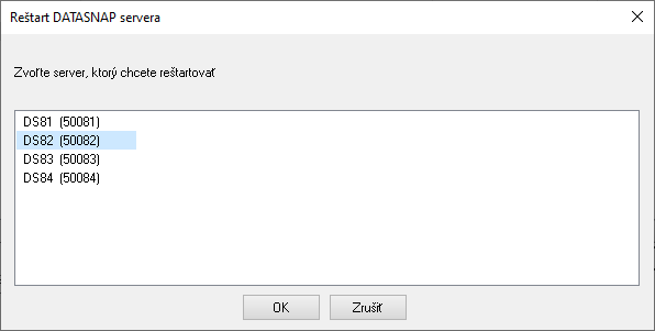 Tlačidlo slúži na ukončenie a znova spustenie DATASNAP serverov.