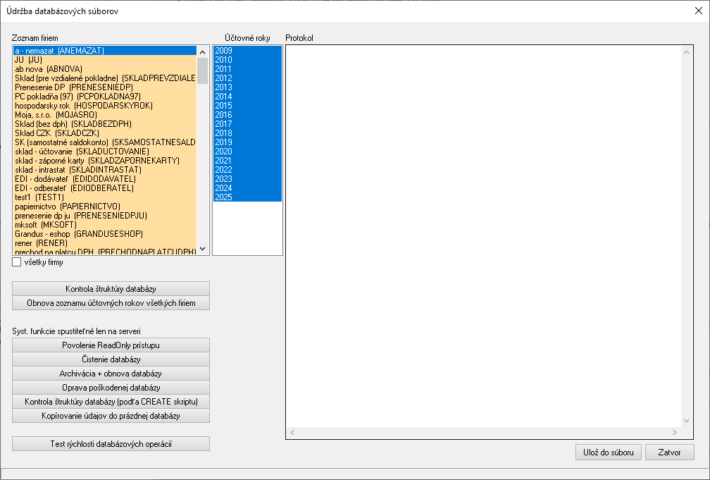 Údržba FDB súborov (len z menu okna Zoznam firiem)