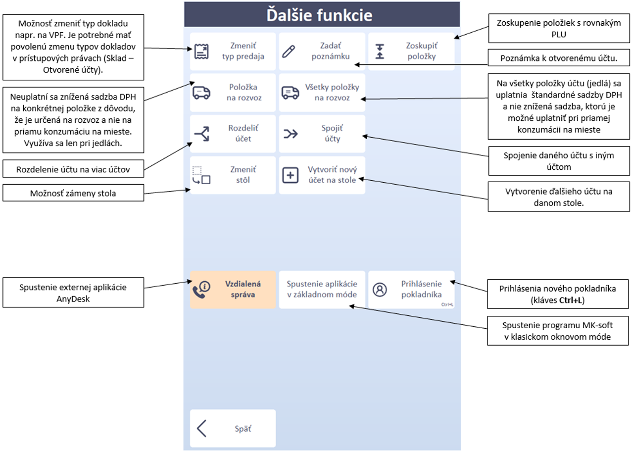Stlačením tlačidla Ďalšie funkcie zobrazíte okno pre spustenie príslušných akcií s aktuálne otvoreným účtom.